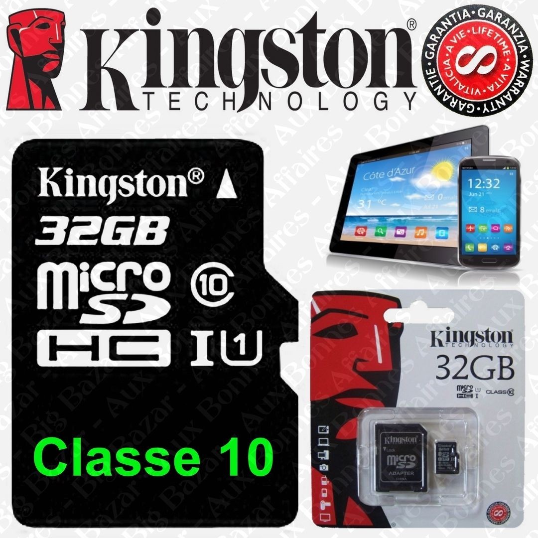 Carte Kingston microSDHC (Haute Capacité) – Class 10 + adaptateur SD